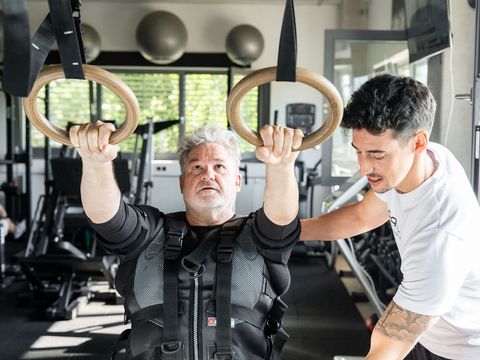 EMS steht für Elektromyostimulation und ist eine innovative Trainingsmethode, bei der elektrische Impulse verwendet werden, um Muskelkontraktionen auszulösen. Dies geschieht durch das Anlegen von Elektroden auf die Haut, die elektrische Signale an die Muskeln senden. EMS kann sowohl zur Steigerung der Muskelkraft als auch zur Rehabilitation nach Verletzungen eingesetzt werden. Die Methode ermöglicht ein effizientes Training, da sie viele Muskeln gleichzeitig anspricht.