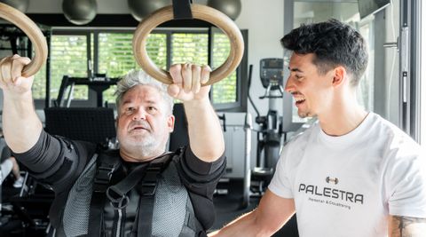 Persönlich betreutes EMS-Training: Dein Trainer begleitet Dich durch jede Übung, passt Intensität und Bewegungen individuell an. Mit unserer kabellosen EMS-Technologie bist Du dabei völlig flexibel.